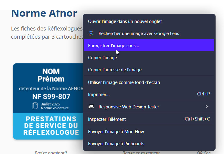 Les praticiens concernés peuvent facilement obtenir ces badges depuis leur fiche professionnelle, un simple clic-droit / enregistrer vous permet de télécharger le fichier image.